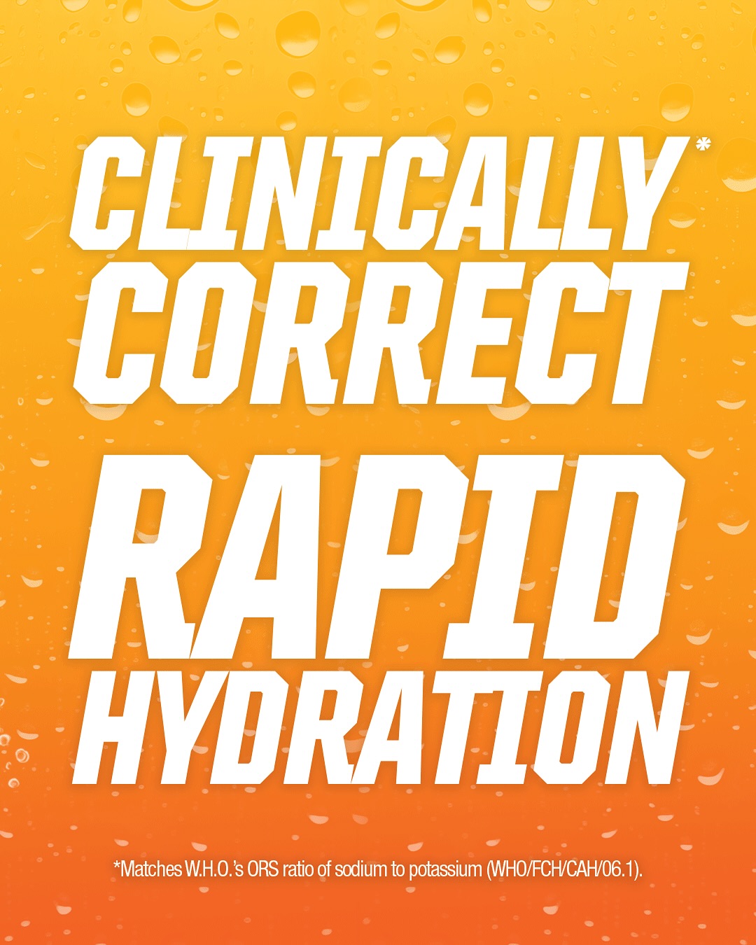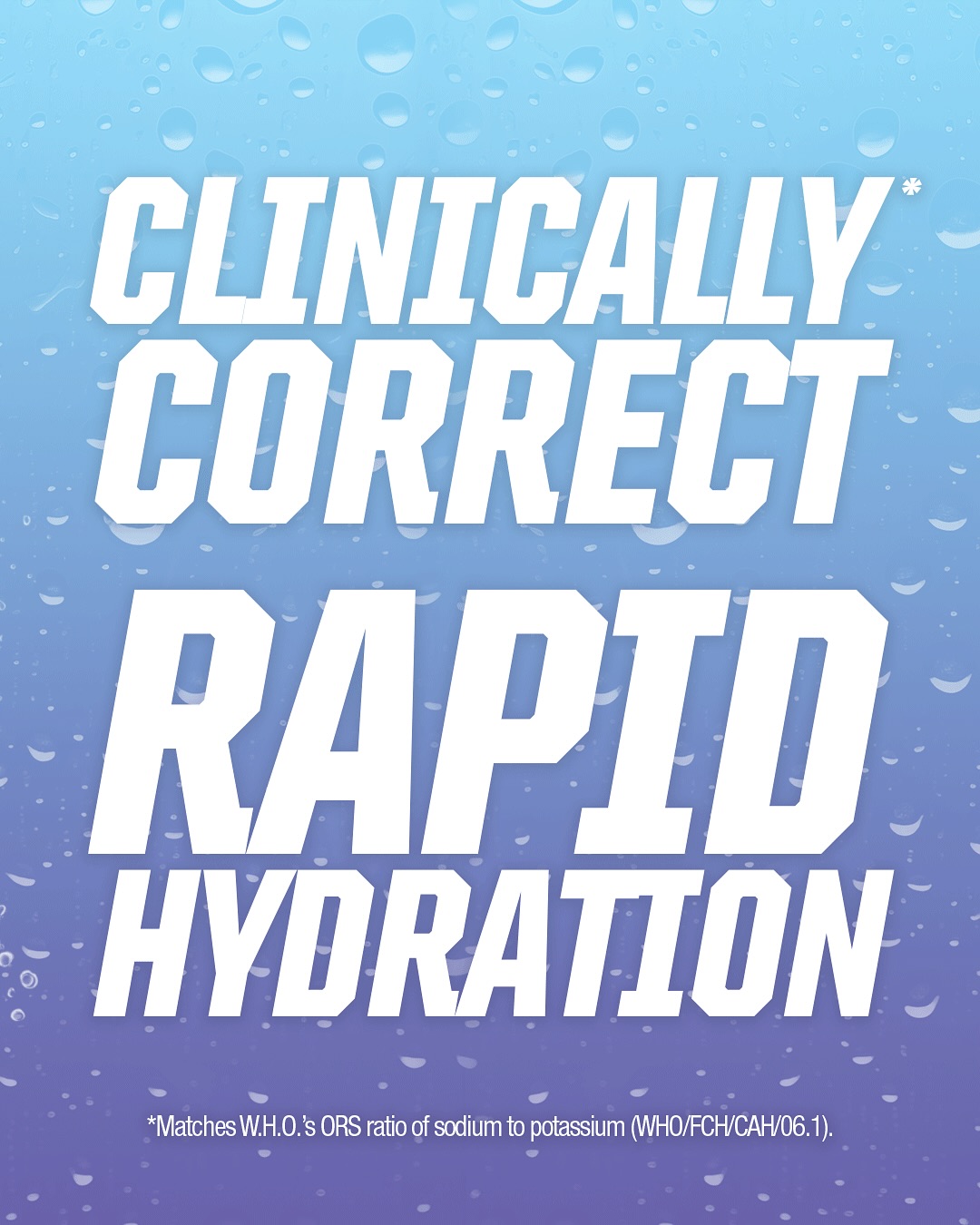 *Based on data that shows ORS (oral rehydration solution) formulas rehydrate faster than water alone, when in a dehydrated state.