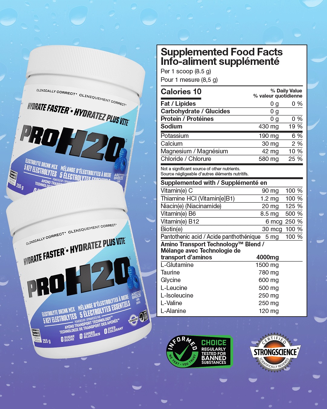 For the fastest, most complete oral rehydration solution, your body needs a combination of water + sodium + an active transport ingredient which is typically sugar. PVL PROH2O sticks to the science but has replaced the sugar with a zero-carb amino acid blend that helps with the active transport of the electrolytes.